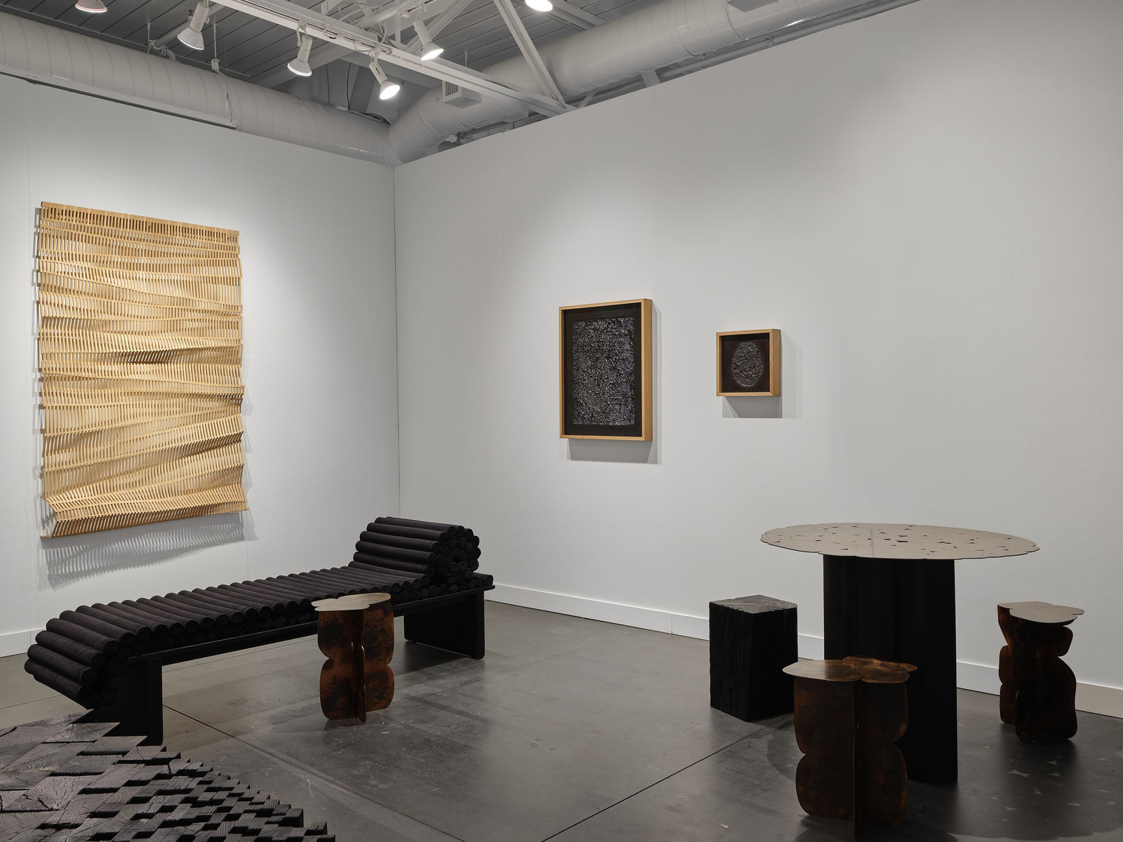 Municipal Bonds is honored to present a solo booth of new works by Oakland-based artist and designer Yvonne Mouser at FOG FOCUS 2025. Mouser's investigations into perceptions of time and natural phenomena serve as a showcase of design, craft, and conceptual art. Her exhibition, diverse in materiality and function, will range from sculptures to furniture, objects, and lighting. In mediums such as wood, metal, glass, sand, paper, natural fibers, and composites, Mouser experiments with process and systems of assembly in combination with concepts of transformation to create works suggesting growth, decay, or a sequence of temporal states, teasing apart time. In her work, layering of functionality or structure transforms familiar objects, yielding adaptations of the vernacular. While at times utilitarian, they function at once as implements for storytelling, for engaging concerns about the environment, and probing curiosities of the universe. The exhibition includes wall-mounted works, freestanding furniture, and tabletop objects arranged into an interior room setting of playful yet melancholic expression.
